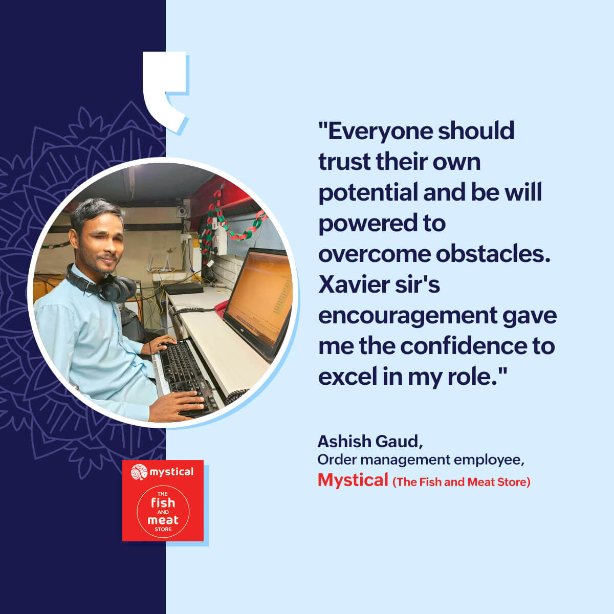 Xavier's dedication to this cause became evident when Ashish Gaud, a visually challenged individual, joined the team. Xavier saw Ashish's potential and invested time and resources into his growth. "When I first joined Mystical Fish and Meat Store, I was amazed by Xavier's unwavering support and encouragement," Ashish recalled.