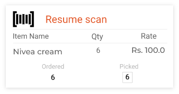Stock picking with in-built mobile camera based barcode scanner ensures the items are picked with complete accuracy, making no room for errors in picking incorrect quantities and mismatches in picking different batch items.