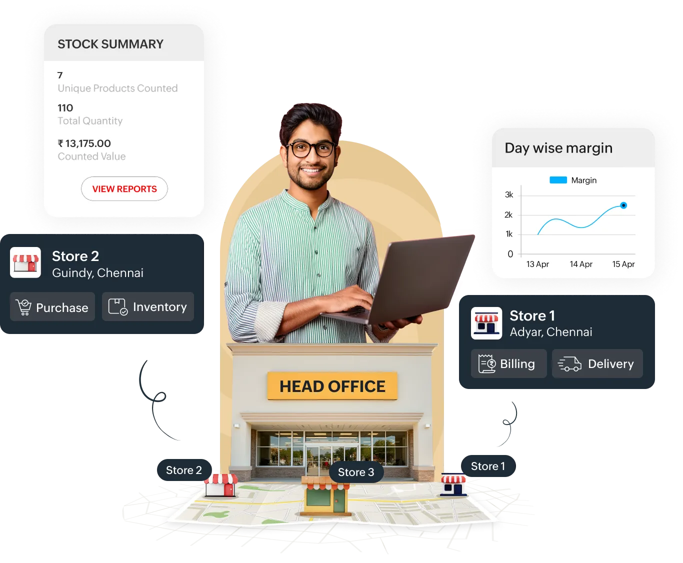 Managing multiple stores with disconnected systems is like juggling with both hands tied. Every outlet has its own billing setup, offers are applied inconsistently, and getting daily reports requires too many calls or spreadsheets.