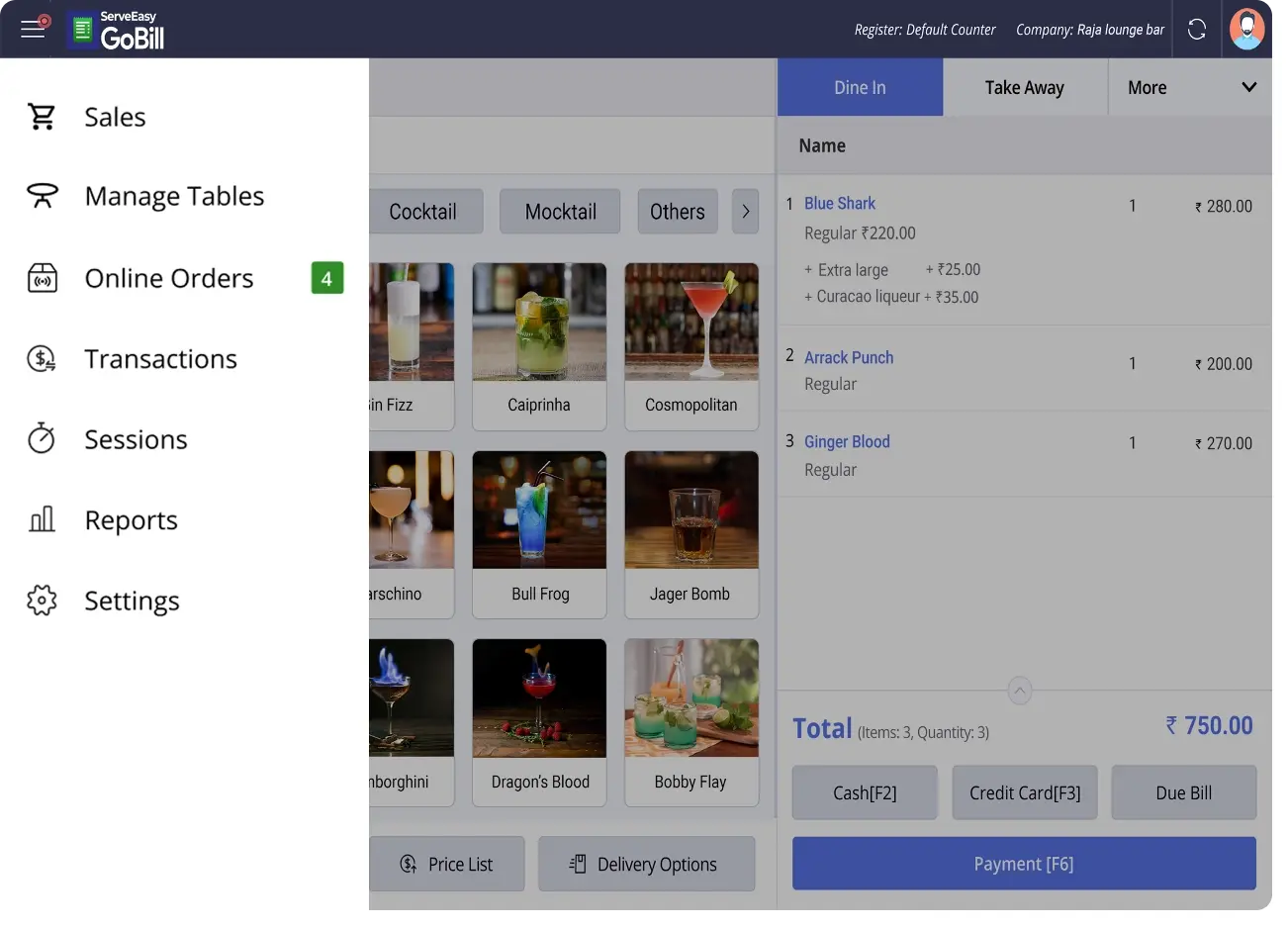 Manage floor-wise/sitting area-based pricing and maximize your bar profits through our bar management software