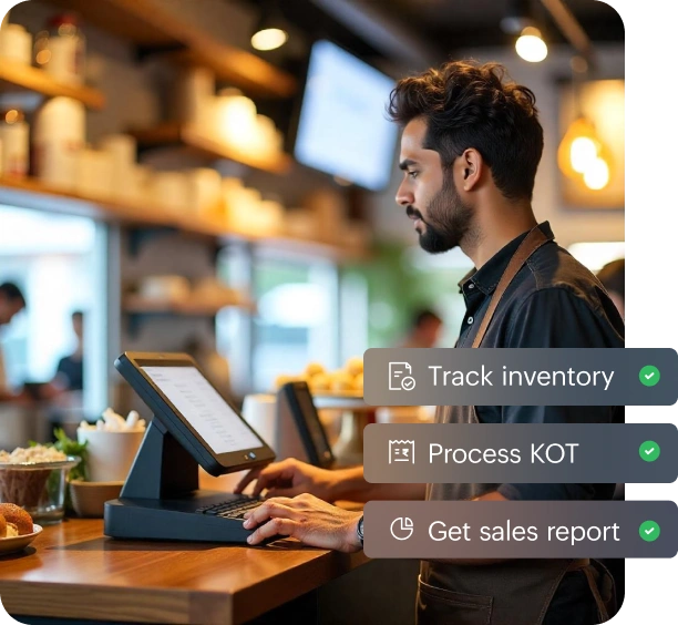 Manage multiple outlets, central kitchens, or billing counters from a single dashboard. Track inventory, sales, and accounts in real time across locations which makes it perfect for restaurant chains.