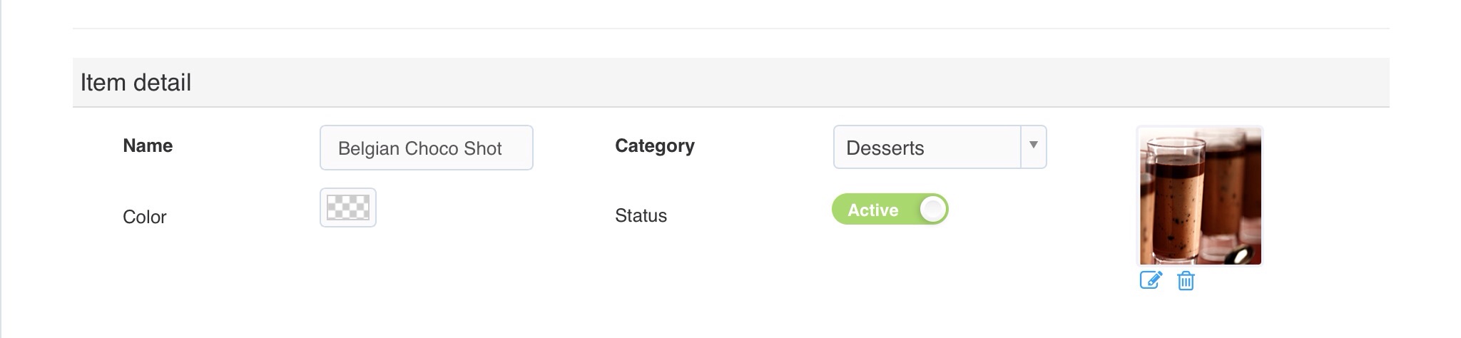 The Add item screen has sections Item detail, Pricing, Taxes and Item modifiersThe Item detail section, contains fields like Name, Category, Color and Item imageIn the Name field, enter the item nameIn the Category field, select a category of the item (or) create a new CategoryIn the Color field, select a color for the item (or) upload the relevant image to the item by selecting the Upload image option available in the right corner In the Pricing section, a table is displayed with the fields Variant name, Cost price, Selling price, Packing amount and SKU (Stock Keeping Unit)In the Variant name field, enter the name of the variantIn the Cost price field, enter the purchase price of the itemIn the Selling price field, enter the selling price of the itemIn the Packing amount field, enter the packing amount of the item for any preferred Order type. Note: By default , the Regular variant is displayed. Variant for an item can be referred to its size, shape or any user defined attribute. For example, a regular coke, a medium coke or a large coke.