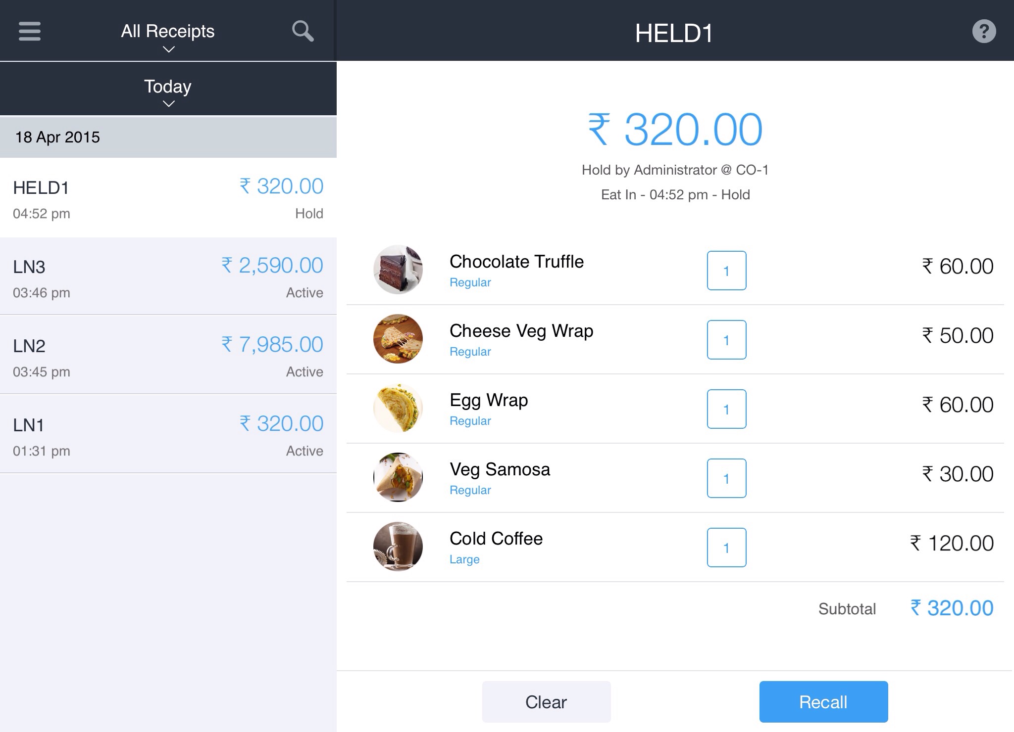 In search box Search receipts, using the order numberToday filter, is used to filter for a particular period/ duration 3. From the list displayed below, select the desired