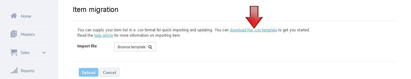 5. Upload the saved .csv file using the Browse template in the Item migration screen and click on Upload